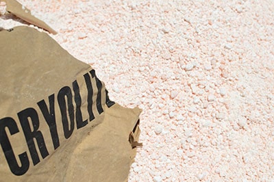 Fluorsid produces granular cryolite by reacting diluted hydrofluoric acid (HF) and aluminium hydrate (Al(OH)3). The H3AlF6 acid is then converted into sodium salt by ion exchange reaction with a sodium chloride solution. After a solid-liquid separation, the slurry of cryolite is calcined in an internally heated rotary kiln. The final product is in the form of pale pink granules. Milled cryolite is obtained from the granular quality after rotary milling.